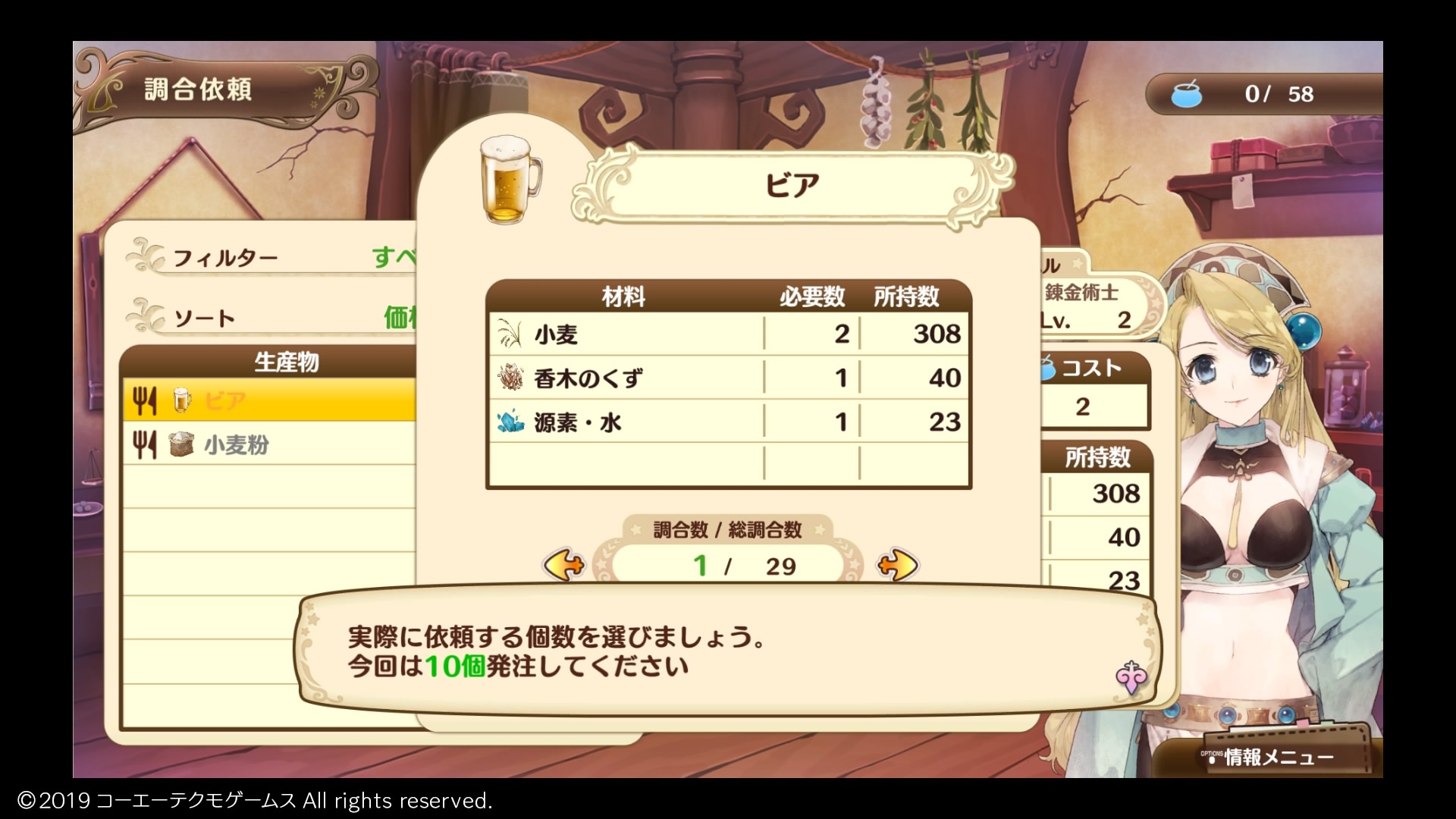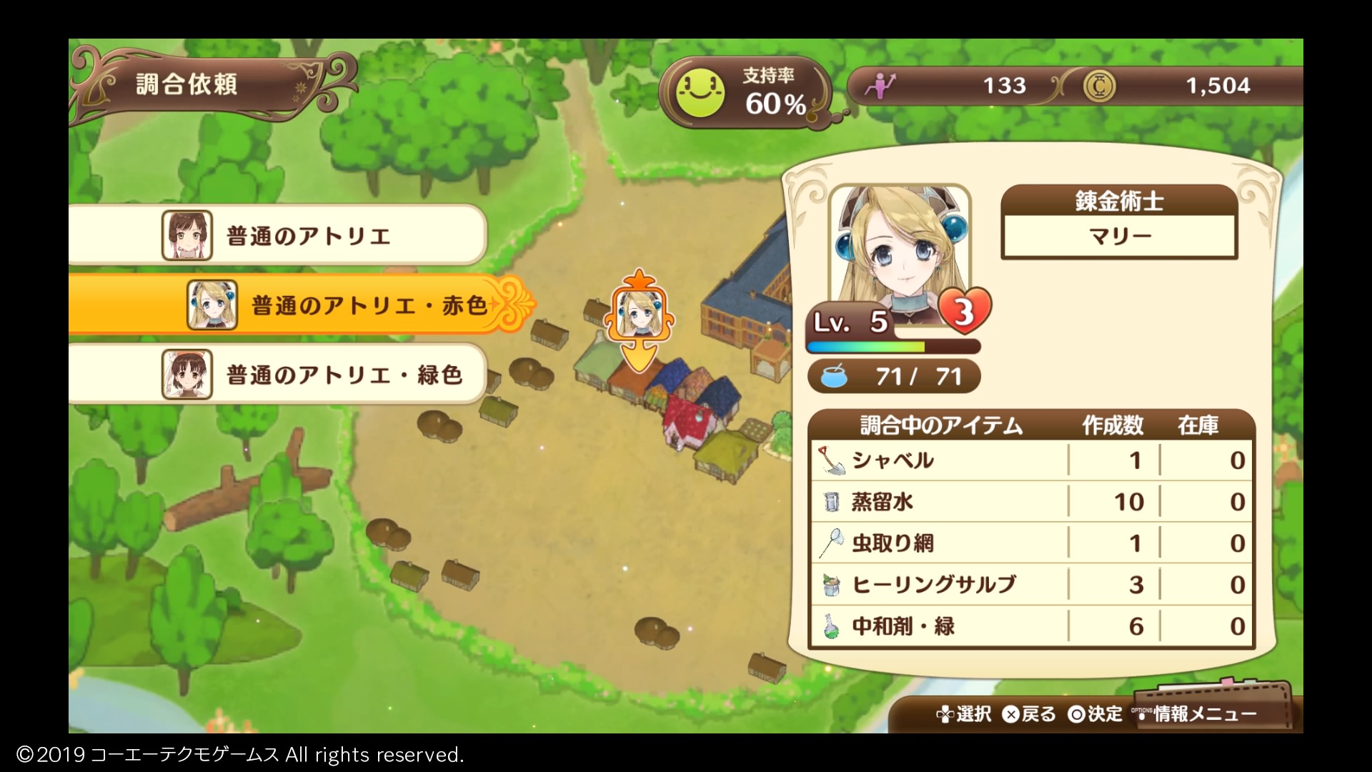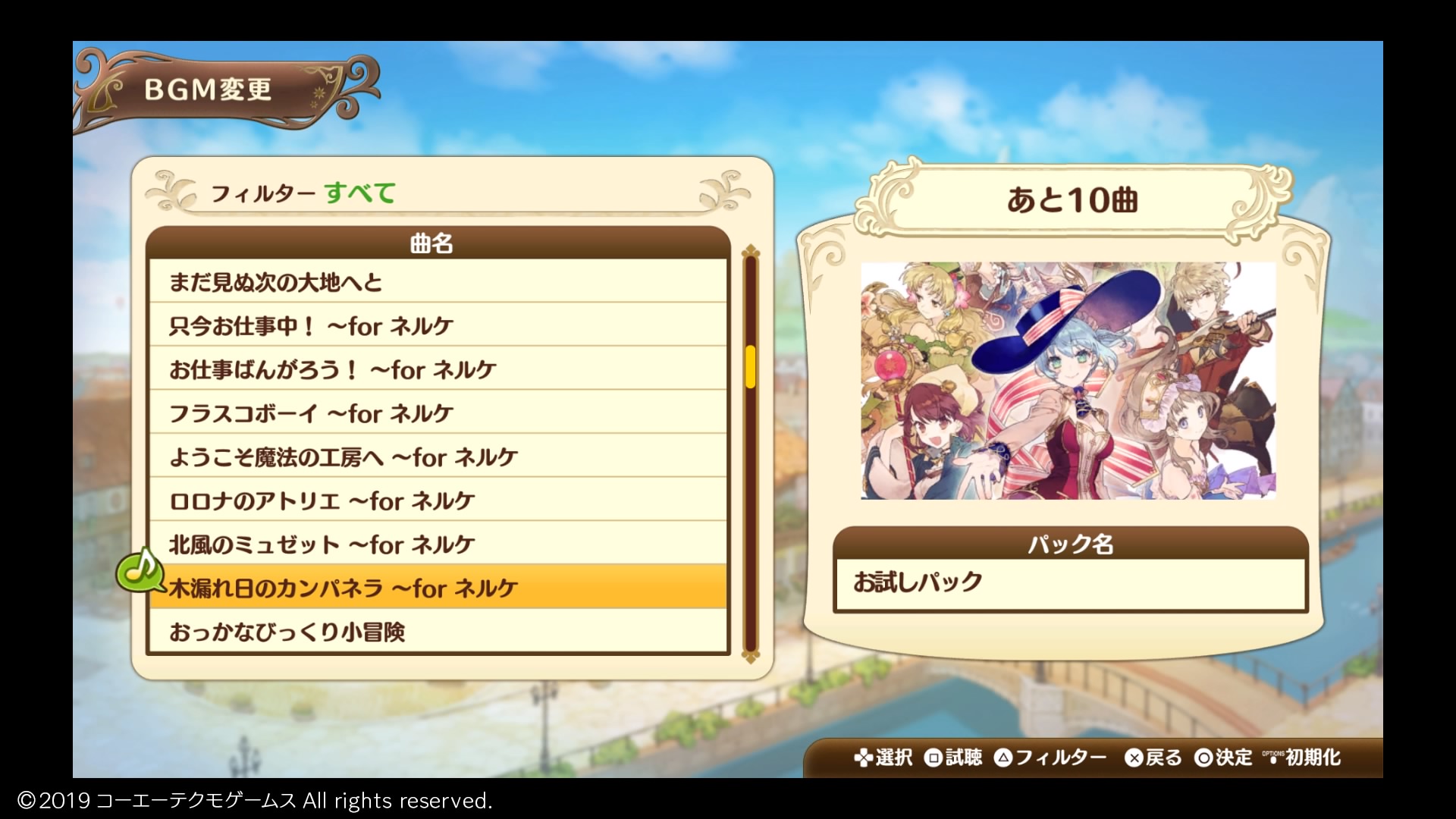 頻繁に聴くことになるのがアトリエのBGMで、今作では錬金術士に調合を依頼する画面で再生されます