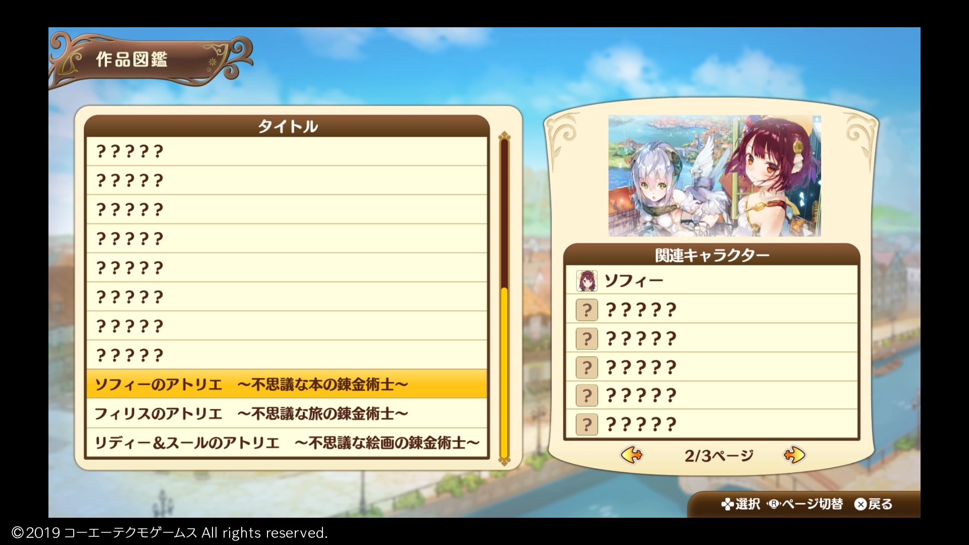 そこでは作品から出演しているキャラの確認ができるのですが、主人公を入れてソフィー、フィリスからはそれぞれ7人、リディー&スールからは3人登場することが分かります