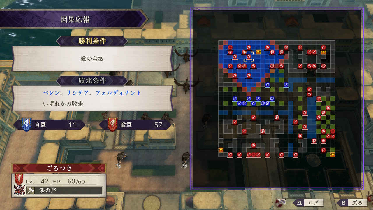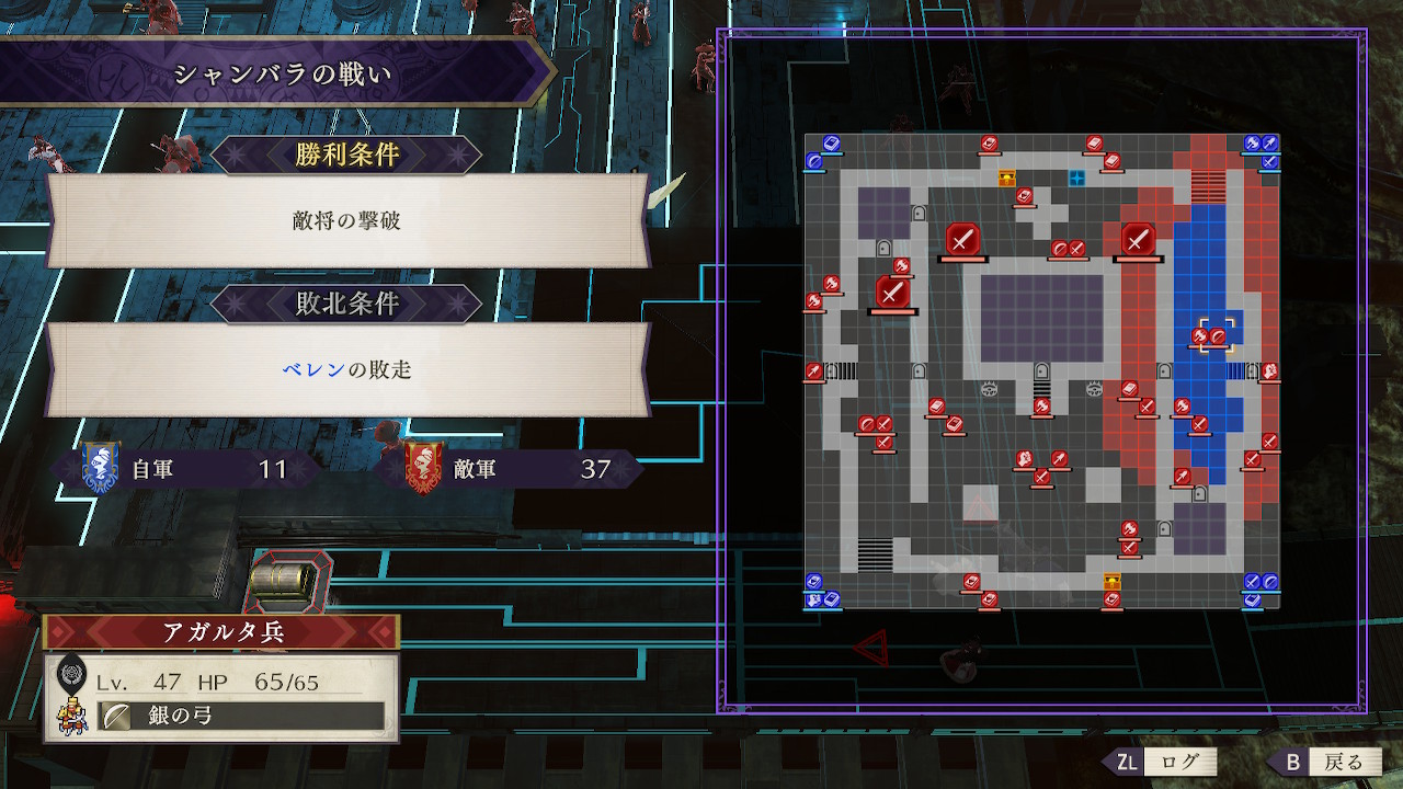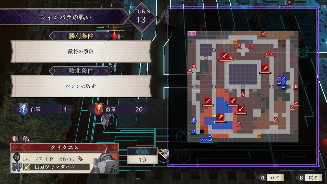 初回プレイでは進軍が遅く南東の部隊が敵増援に飲まれ、遠距離兵器の処理も終わっておらず逃げ場もなかったため攻略継続を断念