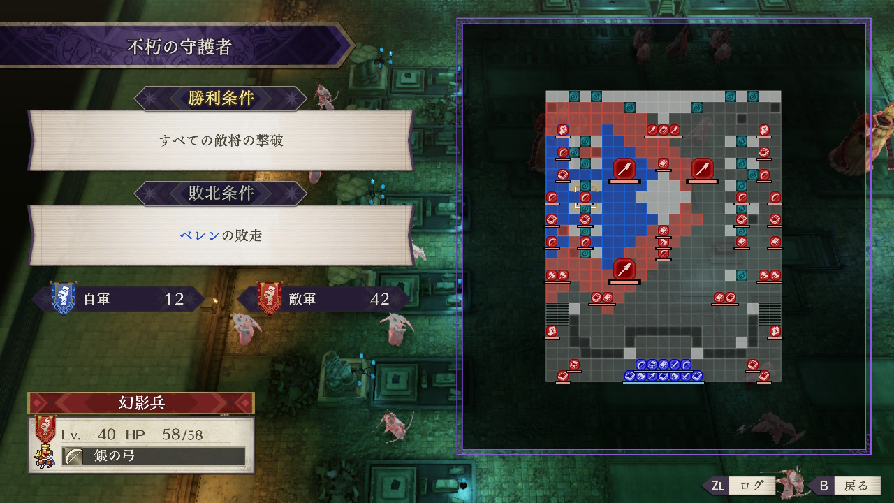 敵の増援は一切出現しないため、自軍の初期配置付近で向かってくる敵を迎撃するだけなら簡単だったが、射程3のゴーレムやボウナイト、サンダーストーム持ちが向かってくる際、地形越しに攻撃してくるためこちらの行動範囲がかなり圧迫されてしまうのが厄介