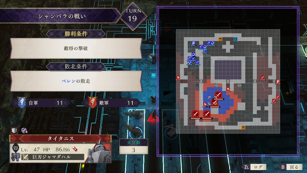 中央の小部屋で待ち受けるボスのタレスは、メガクエイクを使われると自軍の全ユニットに被害が及ぶため、できればエネミーフェイズを渡さず、扉を開けると同時に撃破したい