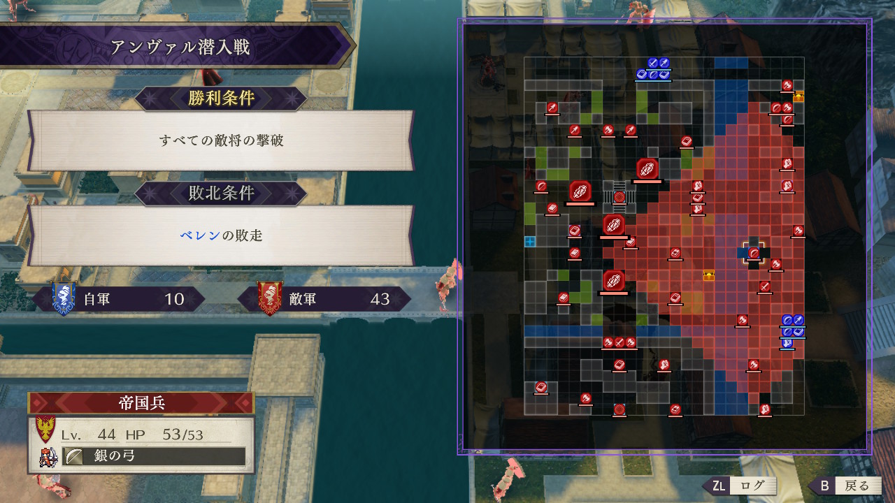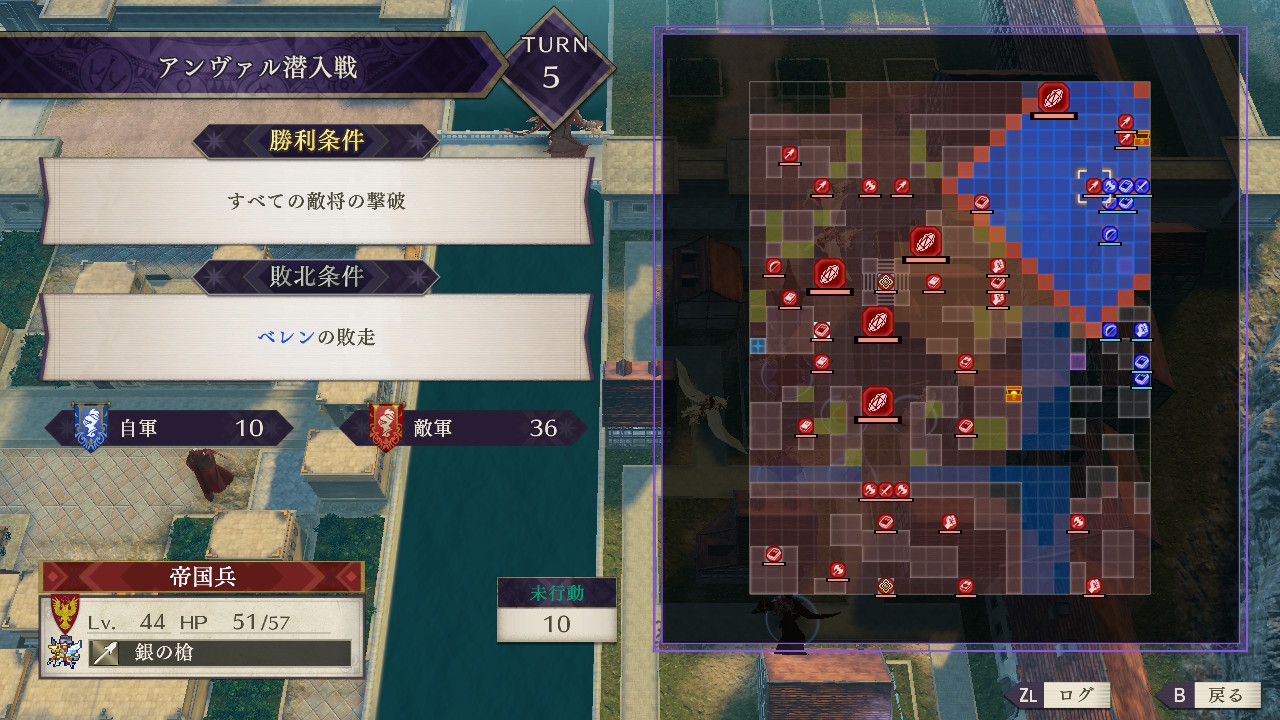 初回プレイでは進軍が遅く南東の部隊が敵増援に飲まれ、遠距離兵器の処理も終わっておらず逃げ場もなかったため攻略継続を断念