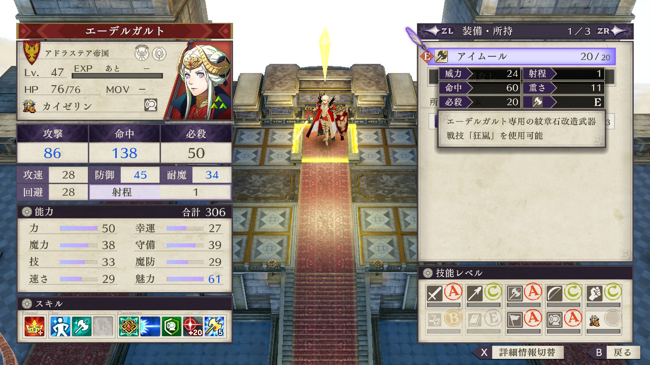 そしてボスのエーデルガルトの攻撃力は紅花の章のヒルダの81、ディミトリの85を超える86