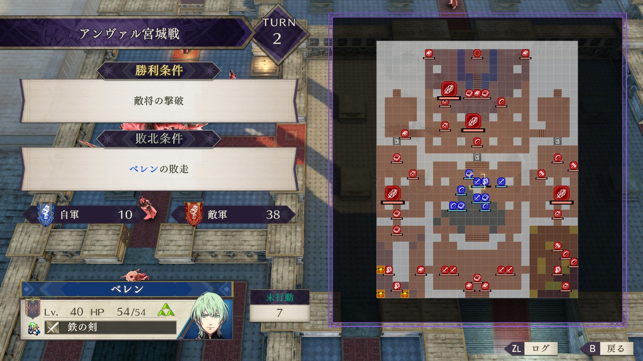 ハード以下ならユニットが十分育っていればそのまま敵部隊と交戦してマップ中央の部屋を目指せたが、ルナティックの敵を相手取る際自軍の数が少ないと手詰まりになるので、まずは4つの部隊を2つにまとめることを考えよう