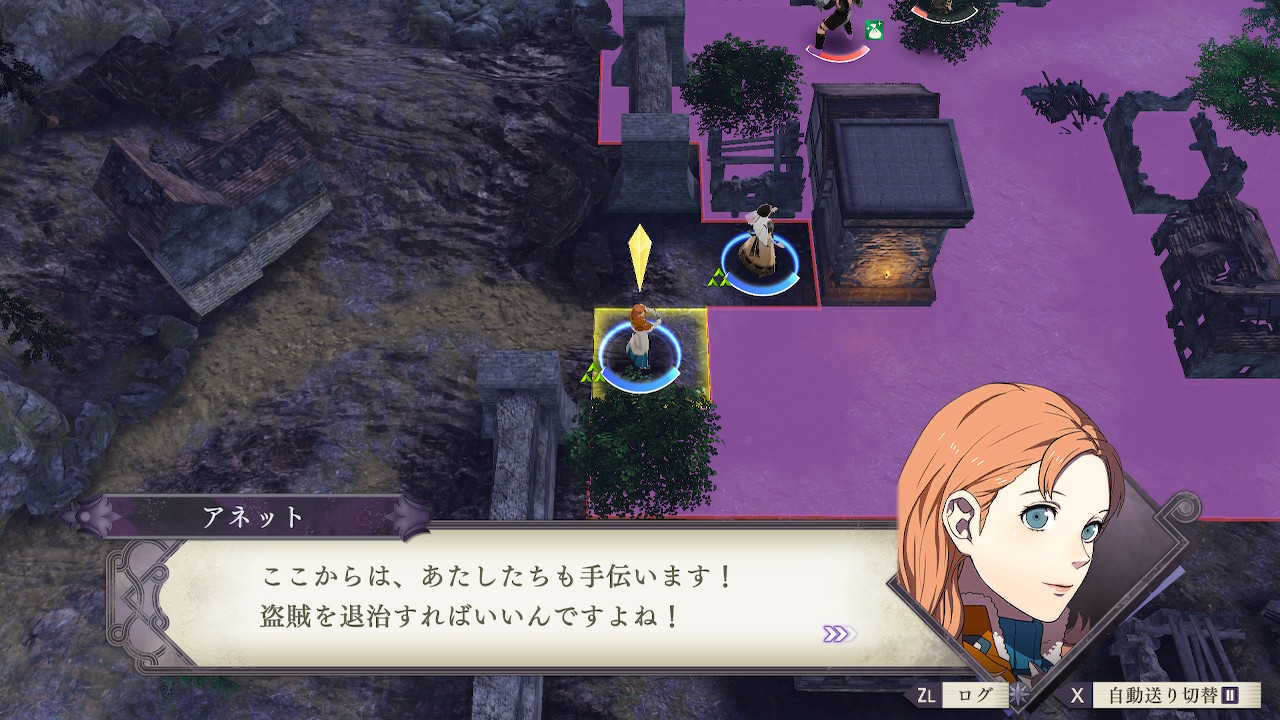 しばらくするとマップ西側から自軍の増援が登場するのだが、南西のアネット、メルセデスの二人はどちらも撃たれ弱く、前衛職にでもなっていない限りエネミーフェイズに敵から攻撃されると瞬殺されてしまう