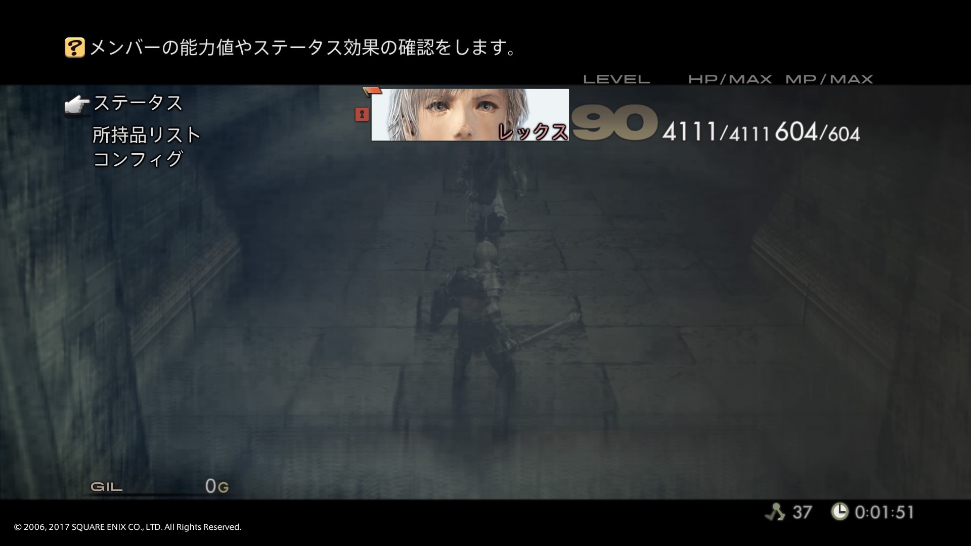 メニュー画面が開けるところまで進めると、レックスのLVが90!?お前も強いのかよwww