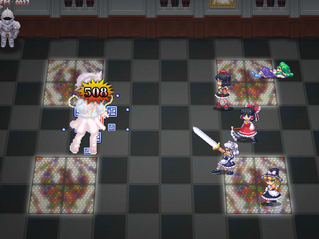 ところが、この戦闘で妖夢が使ってきた天界剣だが、一列攻撃なのか咲夜にしか攻撃が当たらず、咲夜は斬耐性があるのでそのダメージも微々たるものだった