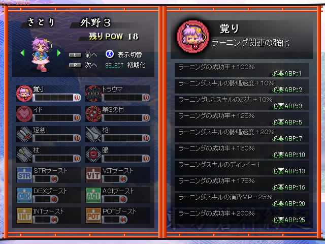 そこで、さとりに状態異常を起こす技を手当たりしだいセットさせる