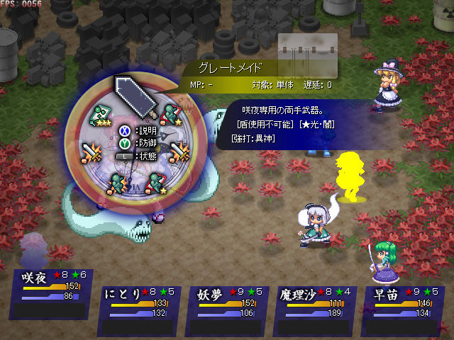 妹紅には合成で向日葵の種を使った専用の武器と防具を与えました