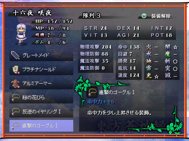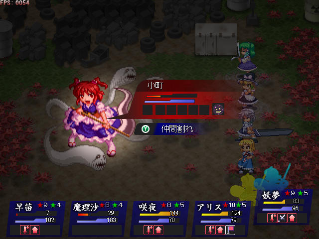 特に小町は物理攻撃が激しいので、咲夜、アリス、妖夢という重装備を装備できるキャラで防御面を固めたのも勝因の一つだったかも