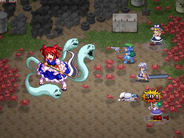 永遠亭に行く前に新規加入の妹紅と白蓮のLV上げと素材集めのため、クリア済みのダンジョンでザコを狩ります
