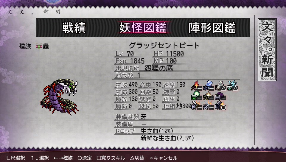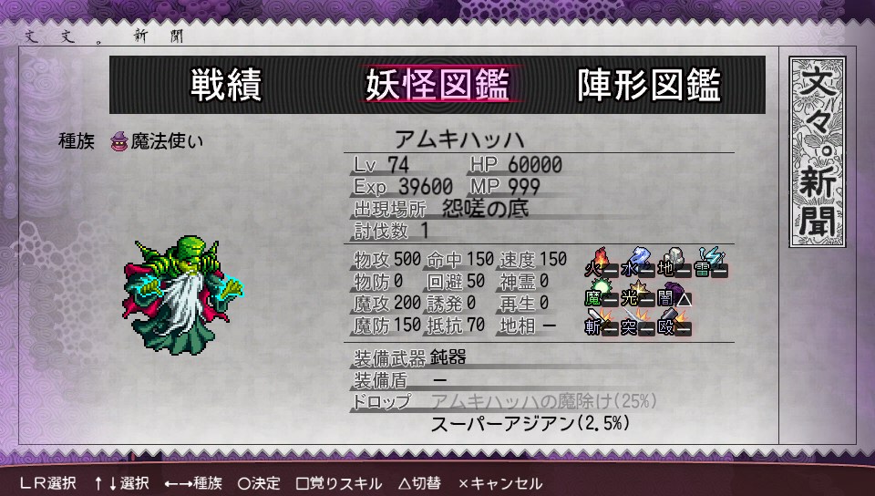 と言っても出現率の低い魔神系やゴルゴーン結界の強敵などのレア妖怪は埋まってないところも多く、ゴルゴーン結界と怨嗟の底を除いたコンプ率はおよそ90%くらいです