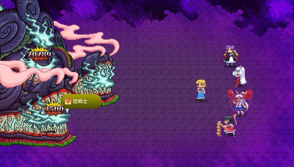 早苗の剣の風で攻撃を上げてみましたが、咲夜でDFSを放っても2000程度しか与えられず、草薙の剣を装備した妖夢の未来永劫斬でさえ平均で5000ダメージしか与えられなかったため、このままだとMPが切れて倒しきれなくなってしまいます