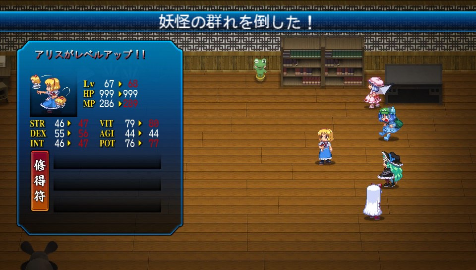 なお、レベリングも兼ねた攻略法のため、他のボス戦でも使用頻度の高いアリスや白蓮は使用しない方法で攻略します