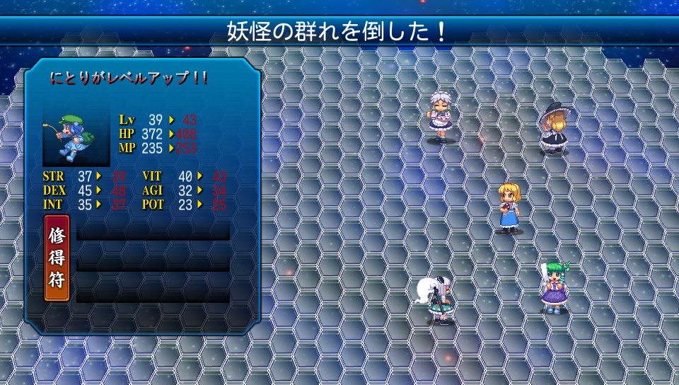 ステータスの最大値が引き上げられたのに合わせて弾幕を習得するレベルも下げられており、かわりに1レベル上げるのに必要な経験値量も多くなっているという調整もされています