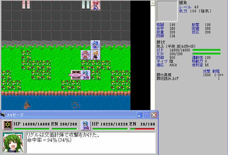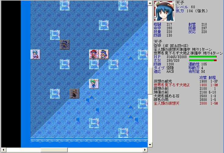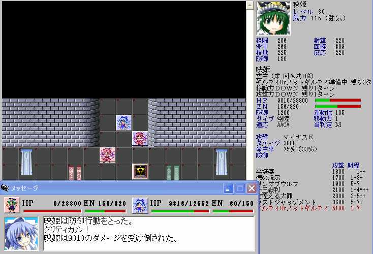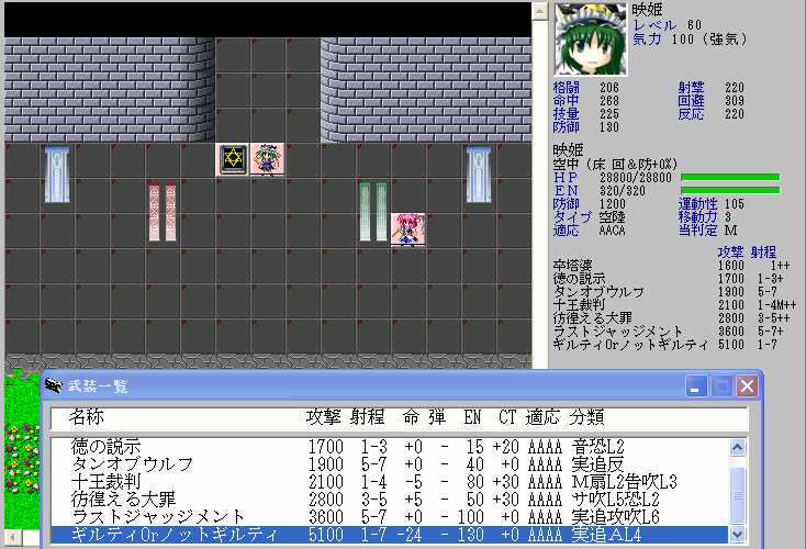 映姫はP属性のある弾幕を一つも持っておらず、移動力も少ないので映姫から7マス離れていれば攻撃されることは無い