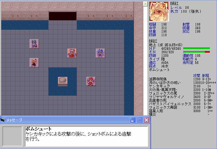 美鈴が強化すると吹き飛ばしが効かなくなるので美鈴を射程外に追いやることが出来なくなるが、美鈴の攻撃は命中率が低いし範囲攻撃もないので、反撃を封じつつ攻撃し続ければ問題なく倒せる