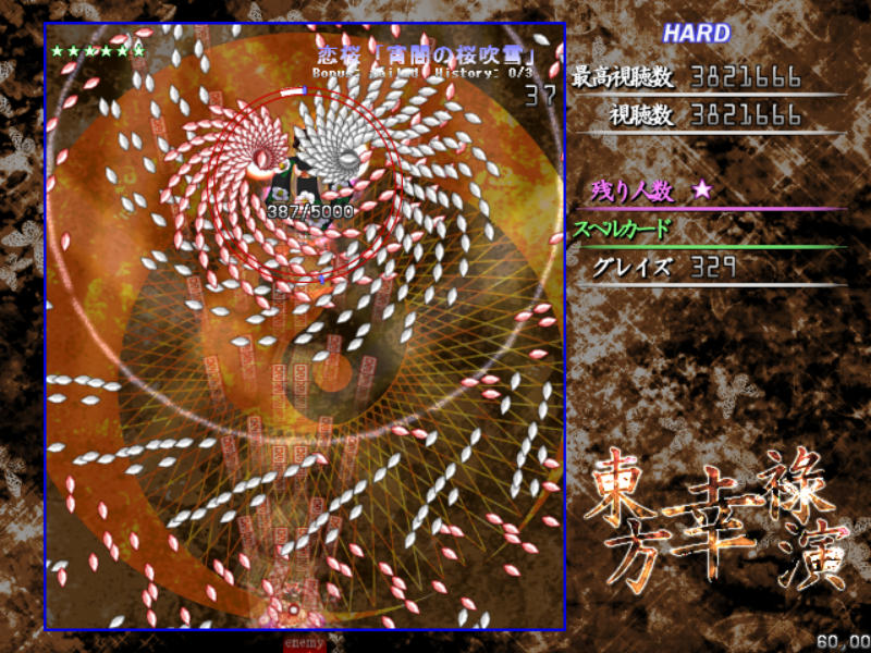 反面、弾幕の難易度自体は原作の平均よりもやや難しめになっており、特にボスが最後に使用するラストワードは標準的な難易度(Normal)と比較すると規格外の高難度(Lunatic級)となってます