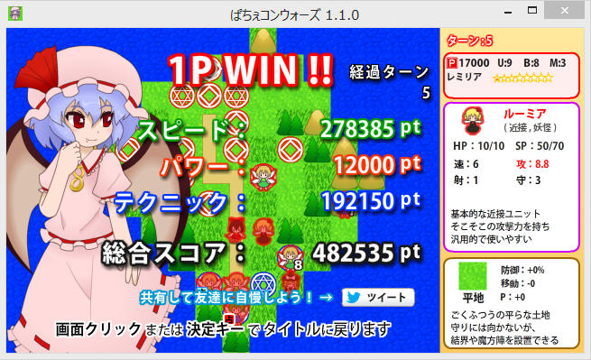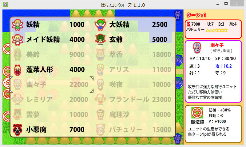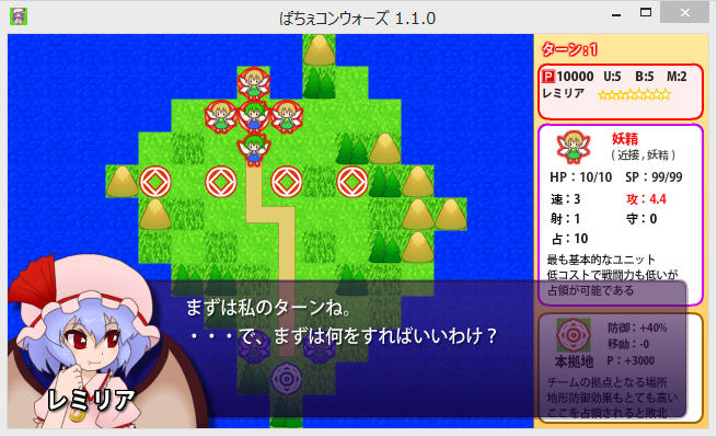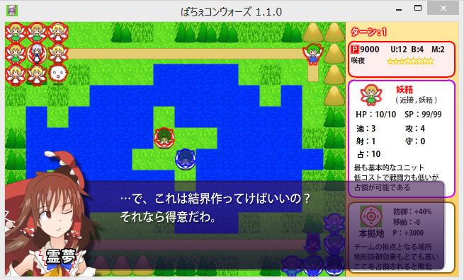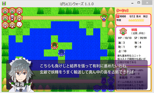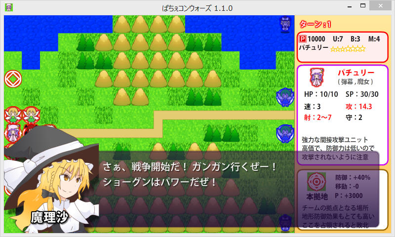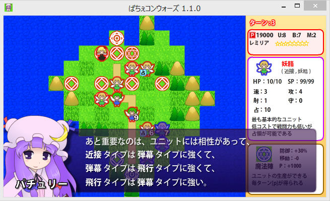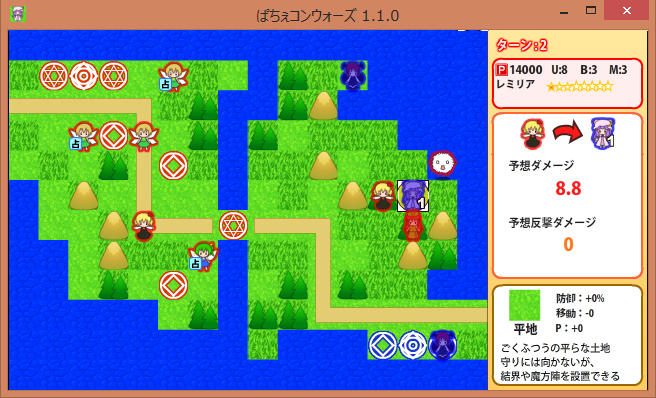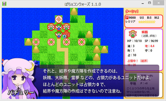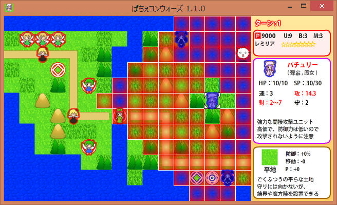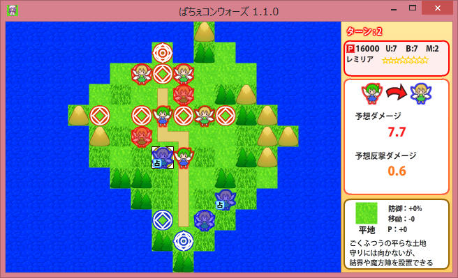キャンペーンのステージ2は、敵ユニットに射程の長い弾幕ユニット、パチュリーが登場