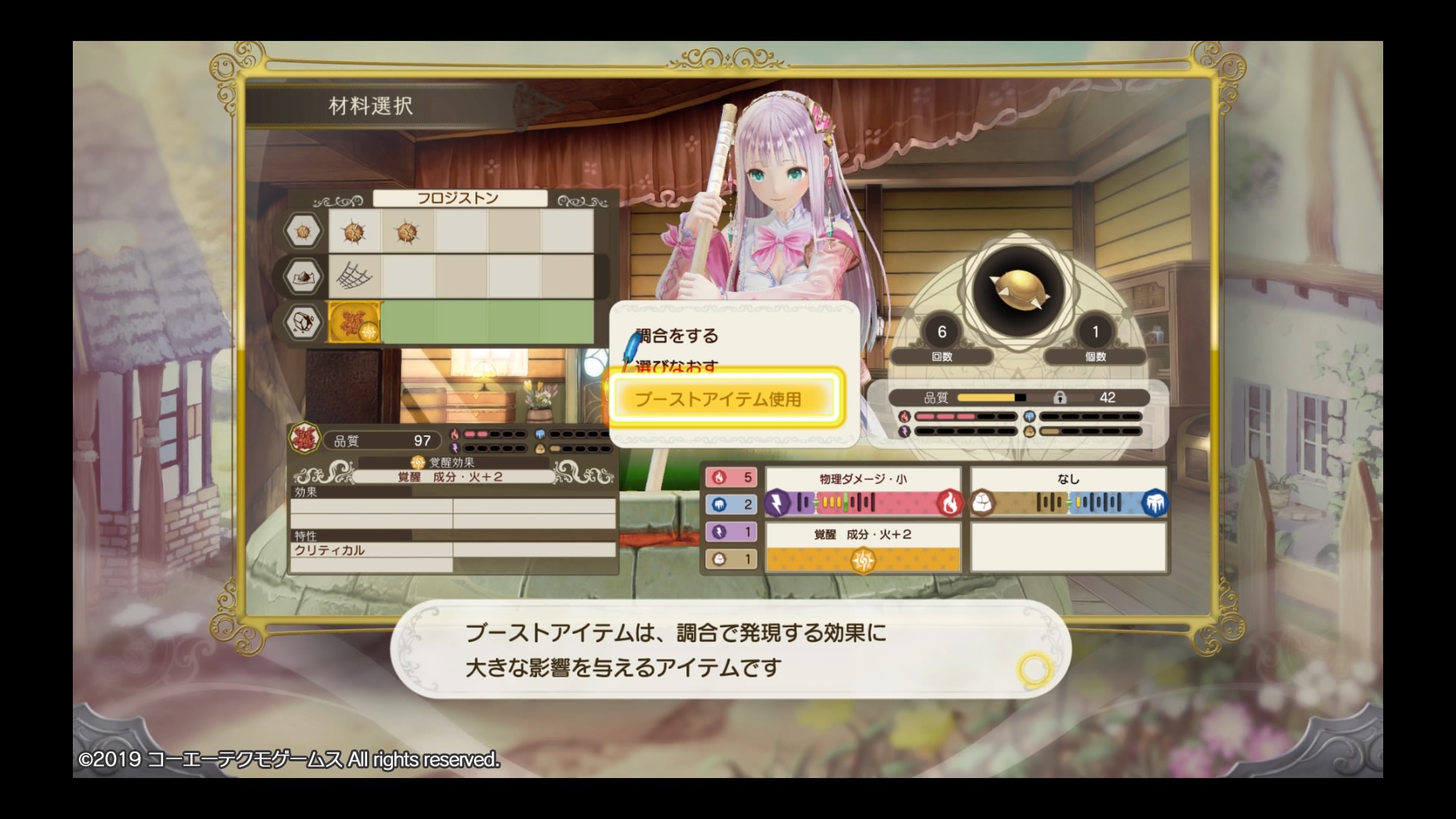 仕方ないので戦闘は青ぷにを適当にしばいて、調合は作成済みの道具をさらに高性能にするなどして回数を稼ぎました