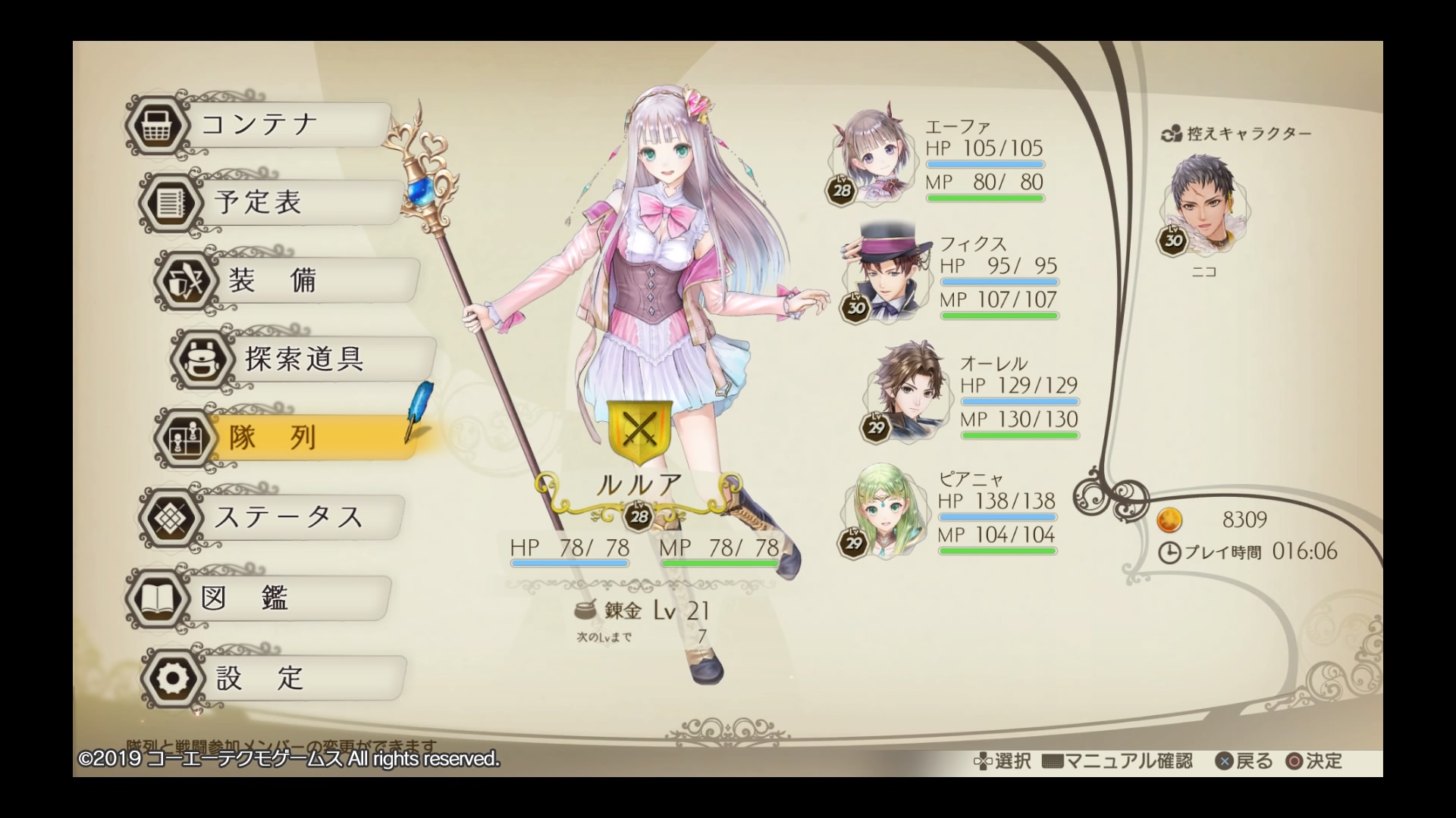 これでパーティメンバーは8人で、DLCのトトリとメルルを加えたら10人だから、けっこう大所帯じゃない?