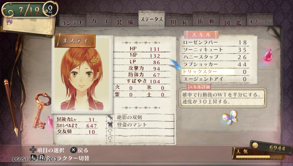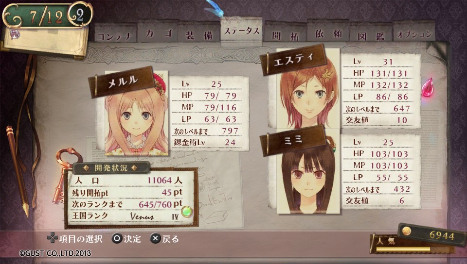 今作は研究に資金を投入したり、調合中のスキルを使うことで調合の日数を縮めることができ、ほとんどのアイテムが1日でできてしまうので調合をしまくってもあんまり日付が進まないんですよ