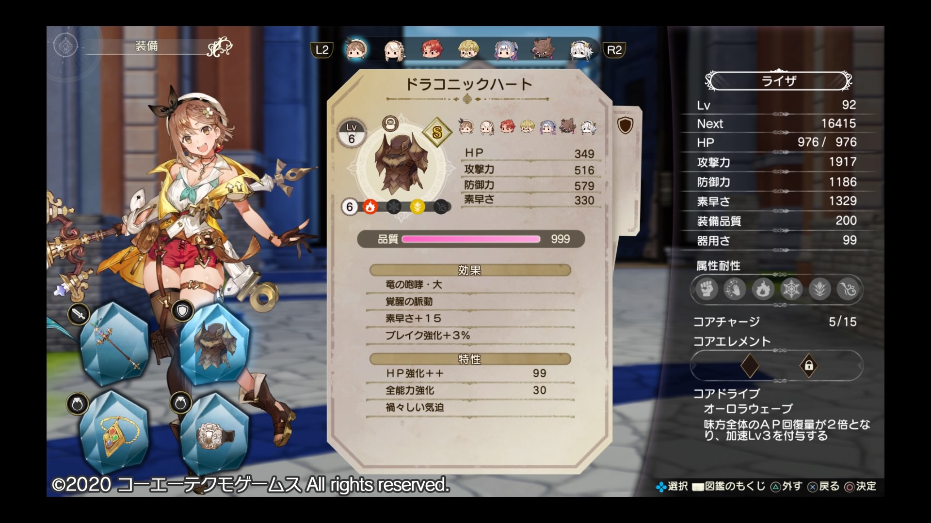 コアドライブは条件に合ったアイテムをアトリエで装備し直す必要があるので、これもラムローストでCCが最大のやつを使うと楽