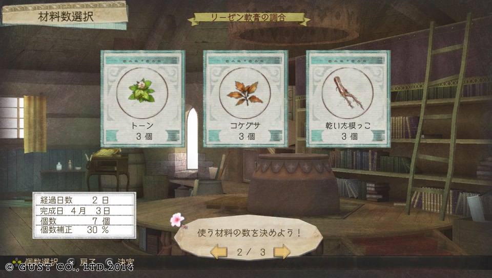 さて、物語が動き出す前の冒頭シーンではゲームのチュートリアル的なのをこなすことになりますが、システム面でほかのアトリエ作品と少しずつ違う点があるので比較しながら注目していきます