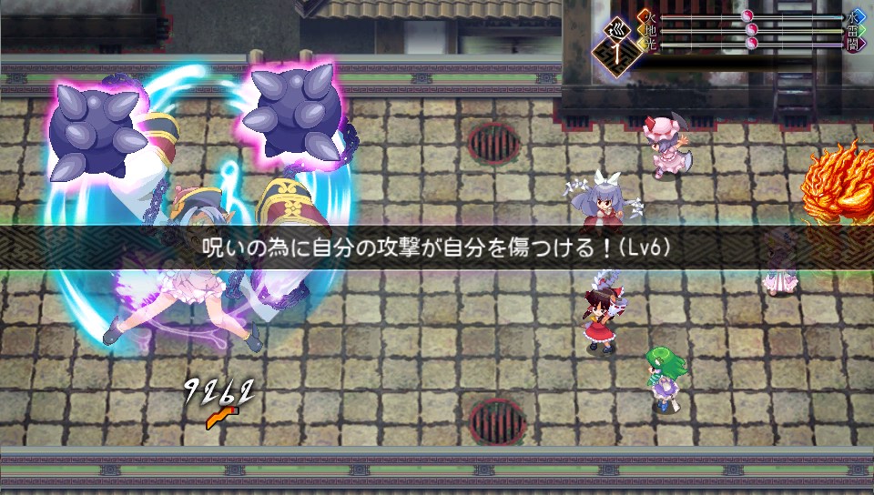 朱麗のスペルカードは水が中立以上だと即死効果がつくので、ここは火属性で攻めつつ火の地相を上げるのが得策