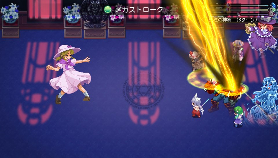 2ターン目以降、予備動作なしでスペルカードを使ってくる可能性があるので、アブソリュートジャスティスで地相操作、エンジェルウォールで耐性をつければ不意に使われても大ダメージは受けなくなります