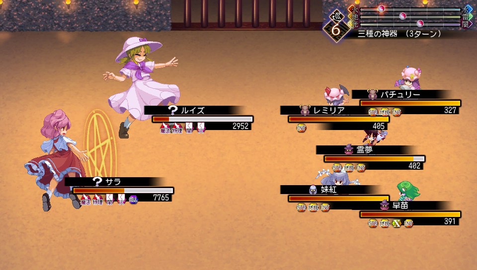 ルイズは単体に強力な四属性魔法を放ってきますが、基本的にはそれだけで、イージスの盾と耐性アクセを装備した霊夢にプロパケイションで囮になってもらい、あとは普通に殴って倒しました