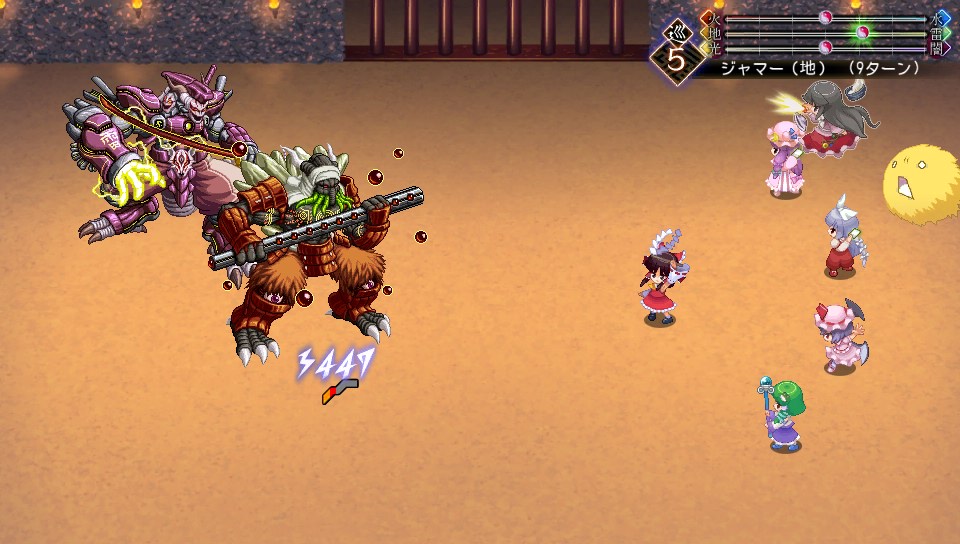 ミニゴーレムのHPは2999で、地属性が弱点なので魔攻上昇をかけたパチュリーのスペルカードなら一撃で片づけられます