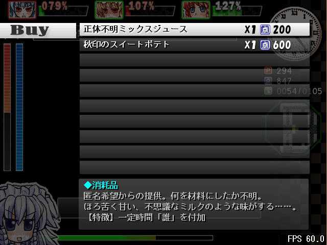 パーセントはスカーレット姉妹の機嫌が良いと上昇するが、機嫌が悪いとどんどん減少してしまう