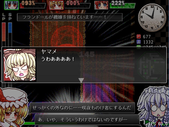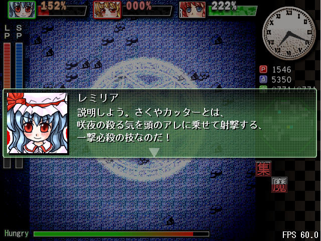コマンド入力で発動する技は全部で5種類あり、それぞれは咲夜の基本アクションなんだけど、スペルを装備することでスカーレット姉妹と美鈴の3人のスペルカードに置き換えることが出来る