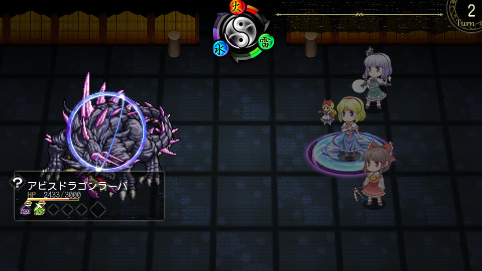 とりあえず、ランドが闇に傾くと闇属性の攻撃力がえげつない事になるため、ランドを光に傾けて少しでもボスの攻撃力を弱めるため霊夢の編成は優先