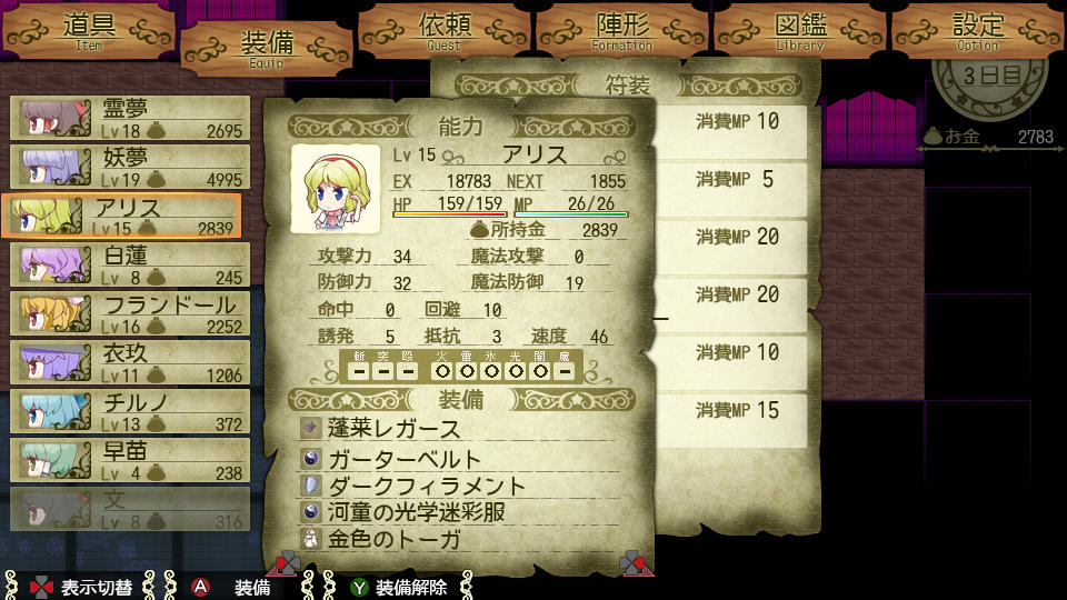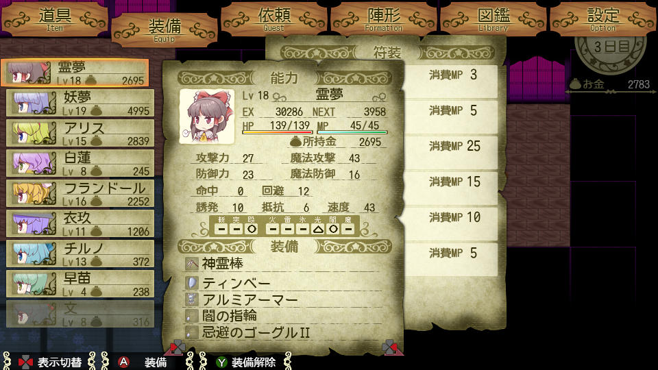 スペカは専用装備と違ってキャラの所持金は必要なく、作成したらすぐに装備可能なので、今はこの霊符を大量にかき集めてどんどんスペカを作成しよう!