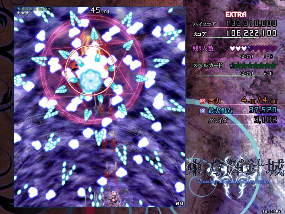 ラスボスは全スペカ取得して残機カンストでクリアできたんだけど、4面と5面でスペカ3枚取れなかったorz