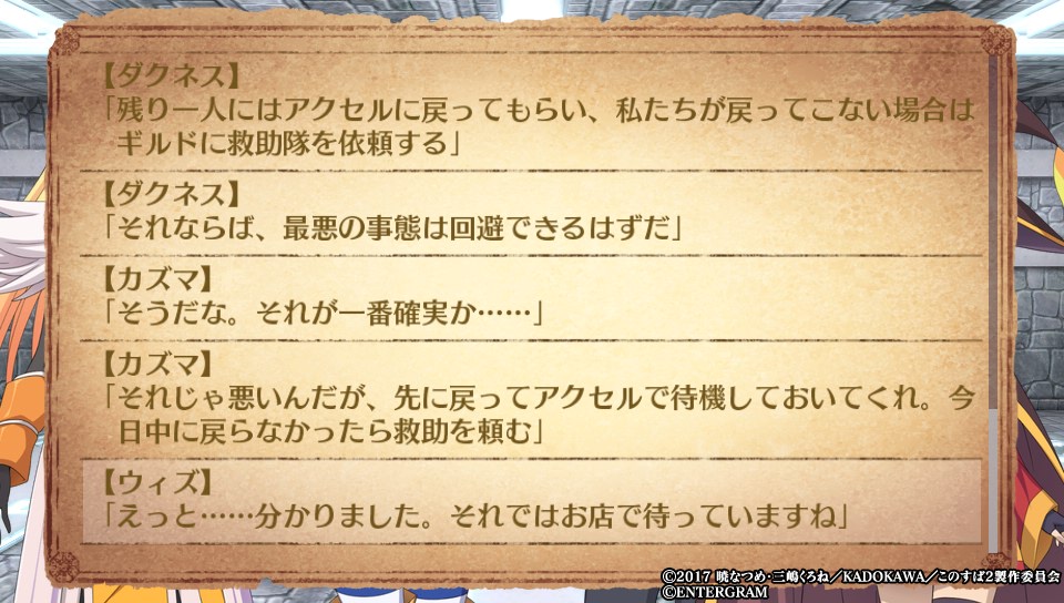 メインストーリーはアクア、メグミン、ダクネスがパーティにいないと進行しないはずでは?