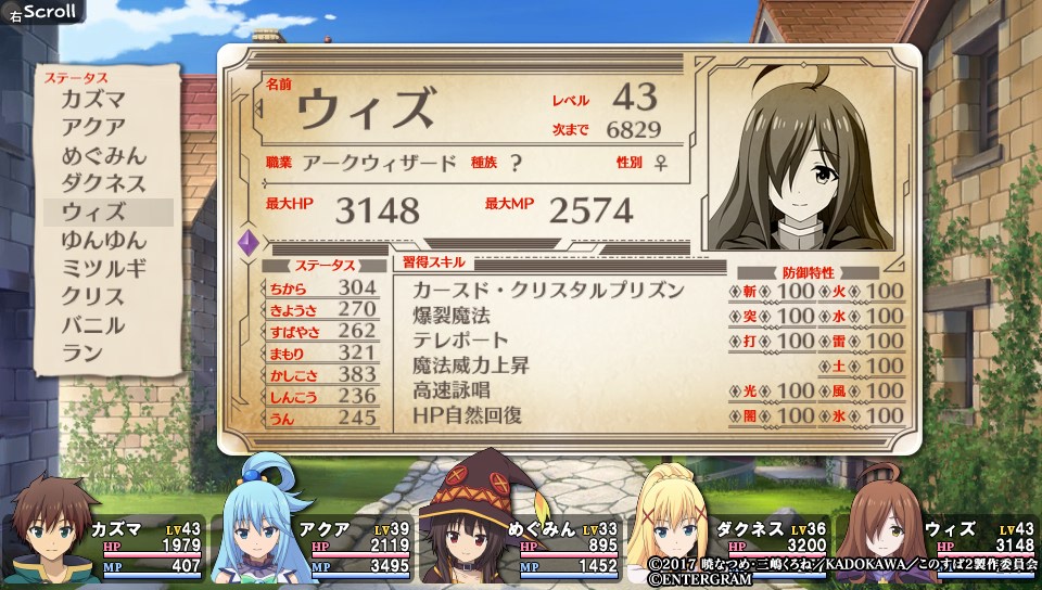 行動指針としてめぐみんのLVを上げるとともに爆裂魔法の熟練度を上げ、かしこさが上がる装備を買いそろえることとします