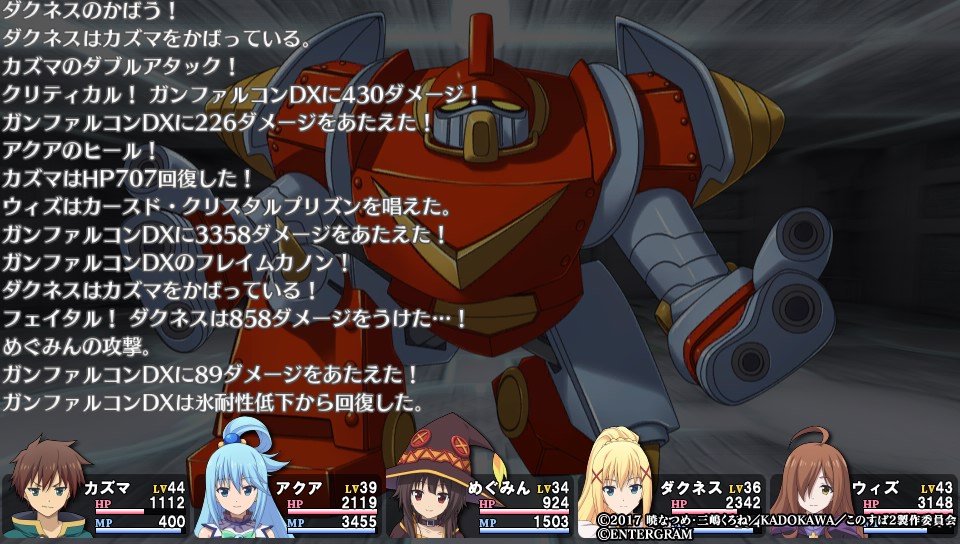 そのためダクネスはめぐみんをかばうことになるのですが、ウィズへの単体攻撃がフェイタルすると4000以上のダメージを受けるので苦しくなります