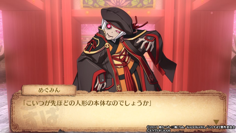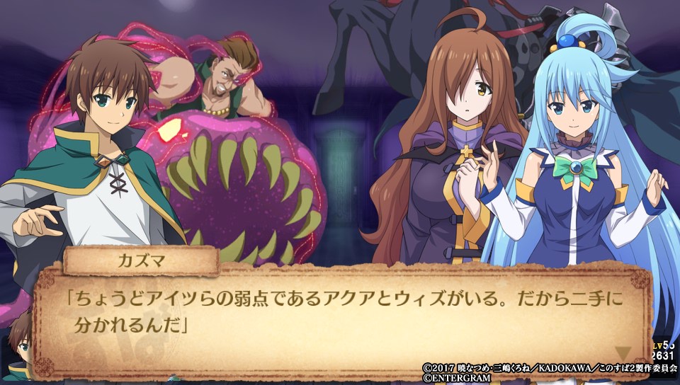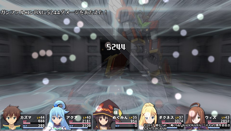 7番目のダンジョン、桃源郷のボス戦ではアクア、めぐみん、ダクネスがパーティから離脱し、カズマを含む人形4体と戦う展開に