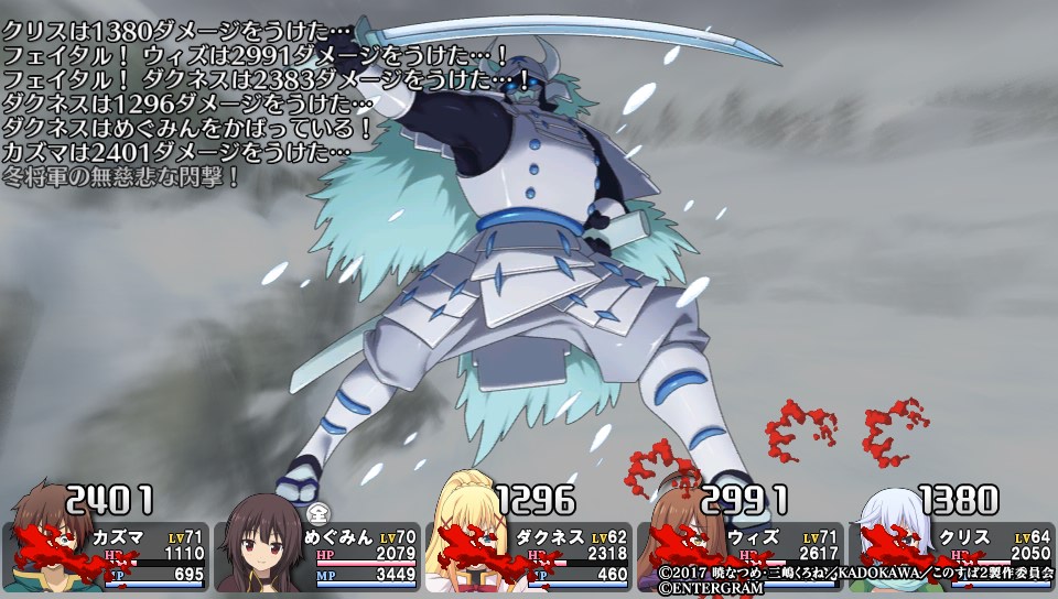 初見殺しポジションの冬将軍ですが、ラスダンで鍛えたパーティなら初撃で瞬殺されることはないので、普通に殴ったら1ターンで倒せました
