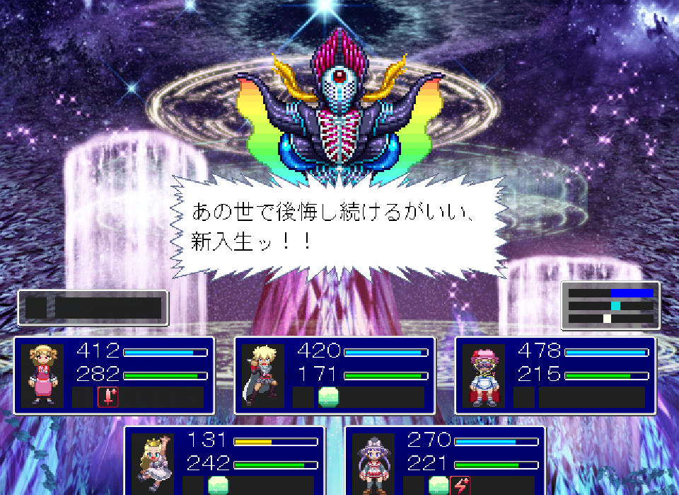 ザコ敵は途中配置されているレーザーで排除できるのでザコ戦でやられることはあんまりなかったんですが、それでも即死でパーティが全滅することとかよくありましたね…
