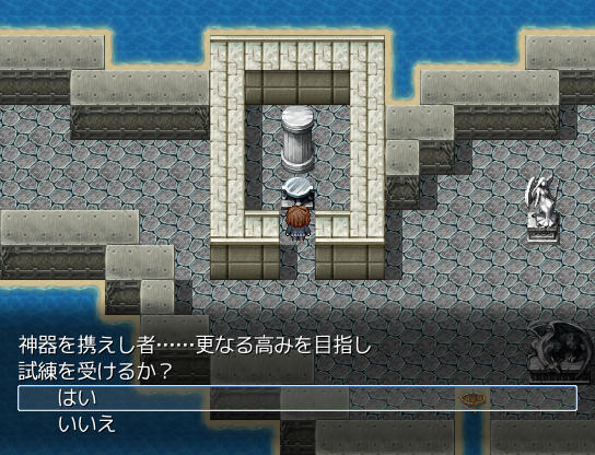ダンジョン探索中、神器を入手することがあり、これを地下世界2Fにある祭壇にささげると試練を受けられる