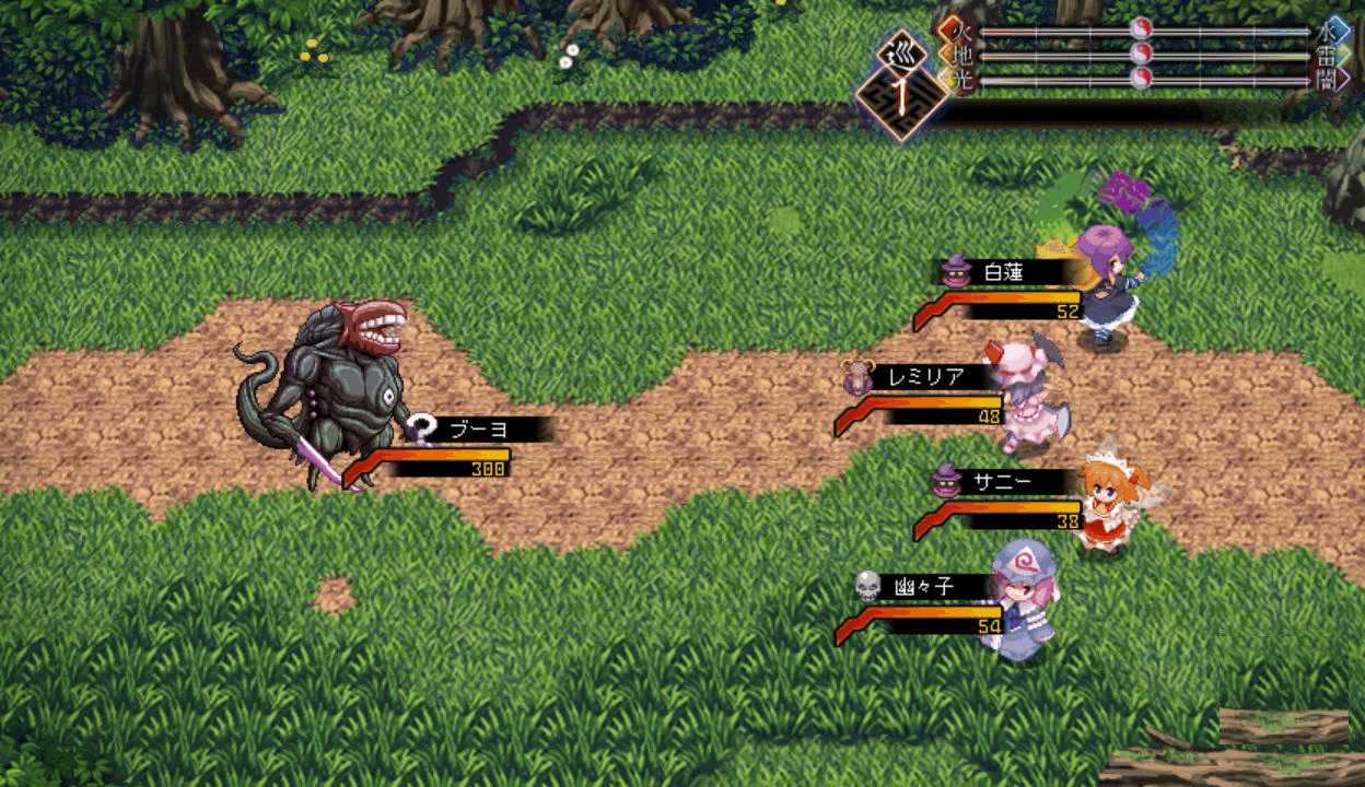 レミィが魔法陣を破壊 これが何かの解決に繋がればいいんだけど…2回目のボス戦はHPが300あるブーヨという魔神が相手なのですが、闇属性が得意なのでルーミアの闇魔法が使えず火力不足に
