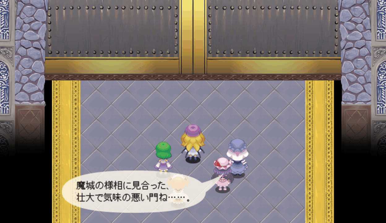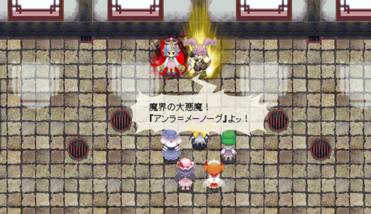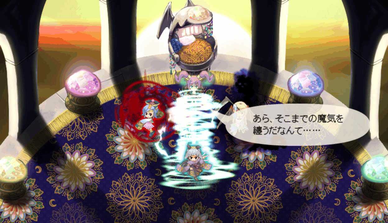 メイド妖精はLVを上げると強力な4属性魔法を習得 魔法系キャラに装備させると非常に便利全員に火属性攻撃を用意させ、ペリのチェイスを攻撃の主体にする 今度こそ勝ちたい12ターン目 長かった戦いがようやく終結!よっしゃー!ボス戦後のイベントで、終末の時計がタイムリミットに!うおーー!幻想郷の中心を貫いて巨大な塔が出現!出た!なんかすごいオーラまとってる!三魔柱の総大将にして異変の真の黒幕アンラ!こいつがラスボスか!倒した三魔柱が終結!次は本気でリベンジマッチすることになりそう三層から一層までを貫く魔城 一体どれだけの広さを持つのか三魔柱とアンラの会話 オリキャラだけど個性が立ってて掛け合いが面白い一斉に罵倒されるドジっ娘こと朱麗 一人だけ言い方が辛辣だよ!?なんかすごいパワーアップした!次は本気の本気で戦うということか