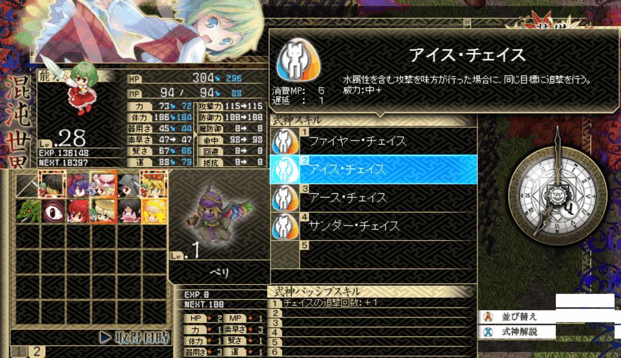 まずはペリを入手 最初から四属性のチェイスを使用可能四属性のチェイスを覚えるので強敵に対して弱点属性のチェイスを仕掛けやすい