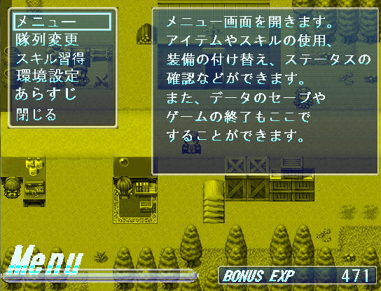Xキーで表示されるメインメニューはオリジナルのものを作成しました