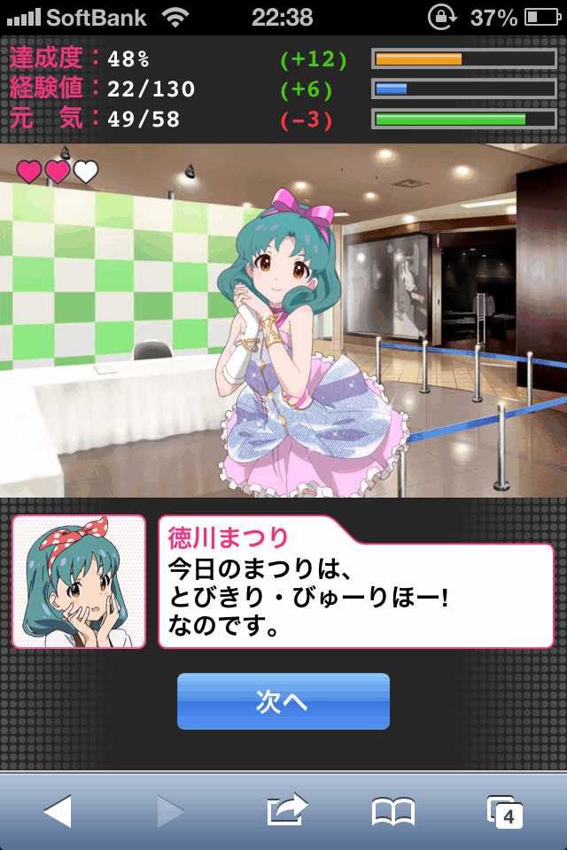 他にも色々モバマスとは違う点があって、最初はやることがたくさんあるんだけど、慣れてくると作業ゲーの部分が多くなってきます