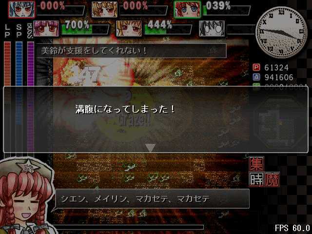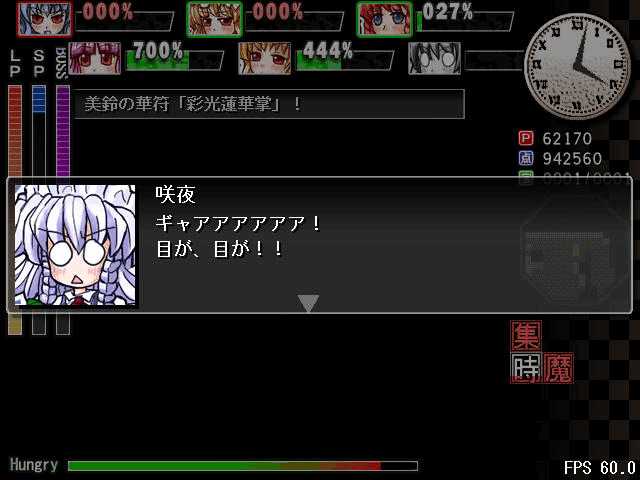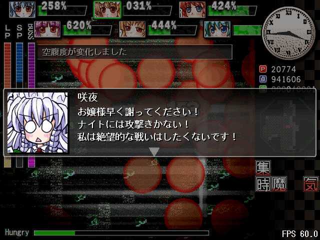 あと、てんこと同じくイベントで咲夜さんの満腹度を強制的に最大にさせ更に混乱状態にしてくるので気をつけましょう